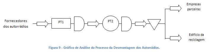 Na figura 9 (apresentada de seguida) é possível verificar que, aquando da receção dos autorrádios, estes são inspecionados, onde se verifica se existem autorrádios com potencial de revenda. Este potencial tem em conta se os autorrádios estão funcionais ou, em caso de avaria, se o estrago é de pouca importância e o arranjo não causa despesas. Os autorrádios que não forem para revenda são separados em categorias e encaminhados para a célula de desmontagem onde se faz uma nova inspeção para verificar se existem componentes que possam também ser revendidos.